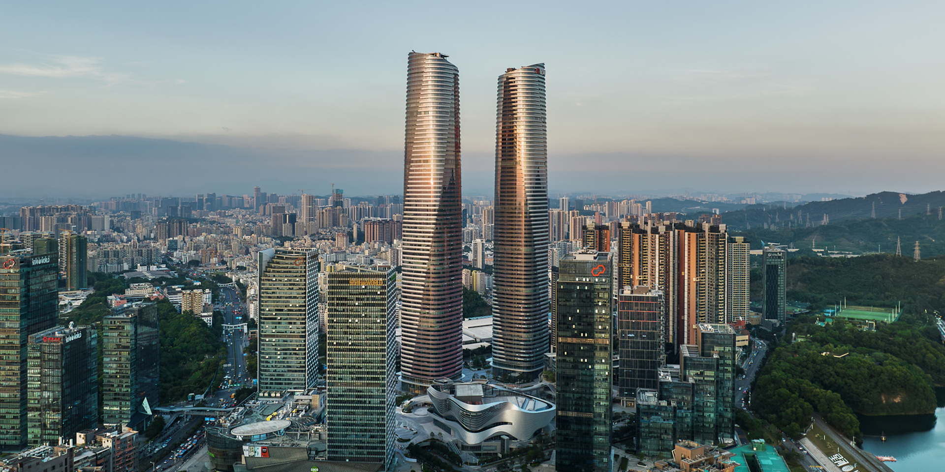 深圳星河双子塔为中国最高的等高双子塔,坐落于深圳中轴线上的城市活力中心和全球科创走廊中心。团队将室外环境和室内建筑的造型一致性,及凸显双子塔的标志性作为大堂设计的核心。让环境中流水巨石等有机线条直接延伸到空间内部,实现室内外无缝融合的效果,同时有机线条造型让大堂的每一面都呈现不一样的空间想象,打造门户意向星河中轴线上的门户的欢迎感。
